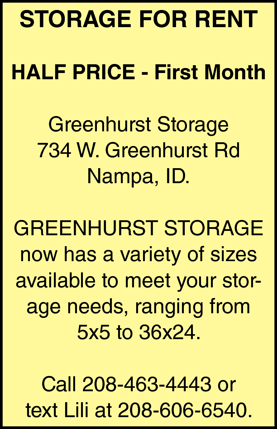 Nov 23, 2025. Greenhurst Storage Storage Services from Idaho Press Services