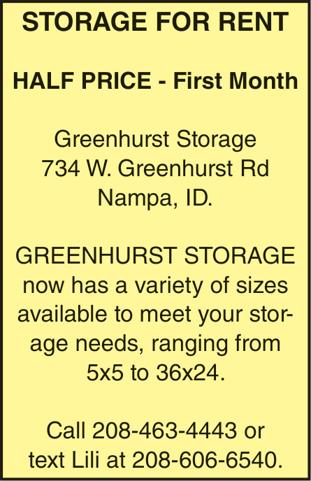 Dec 24, 2025. Greenhurst Storage Storage Services from Idaho Press Services