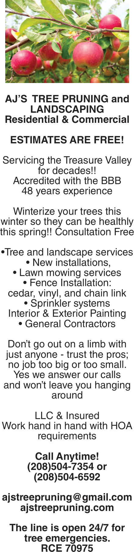 Feb 01, 2026. Aj's Tree Pruning Tree Service Services from Idaho Press Services